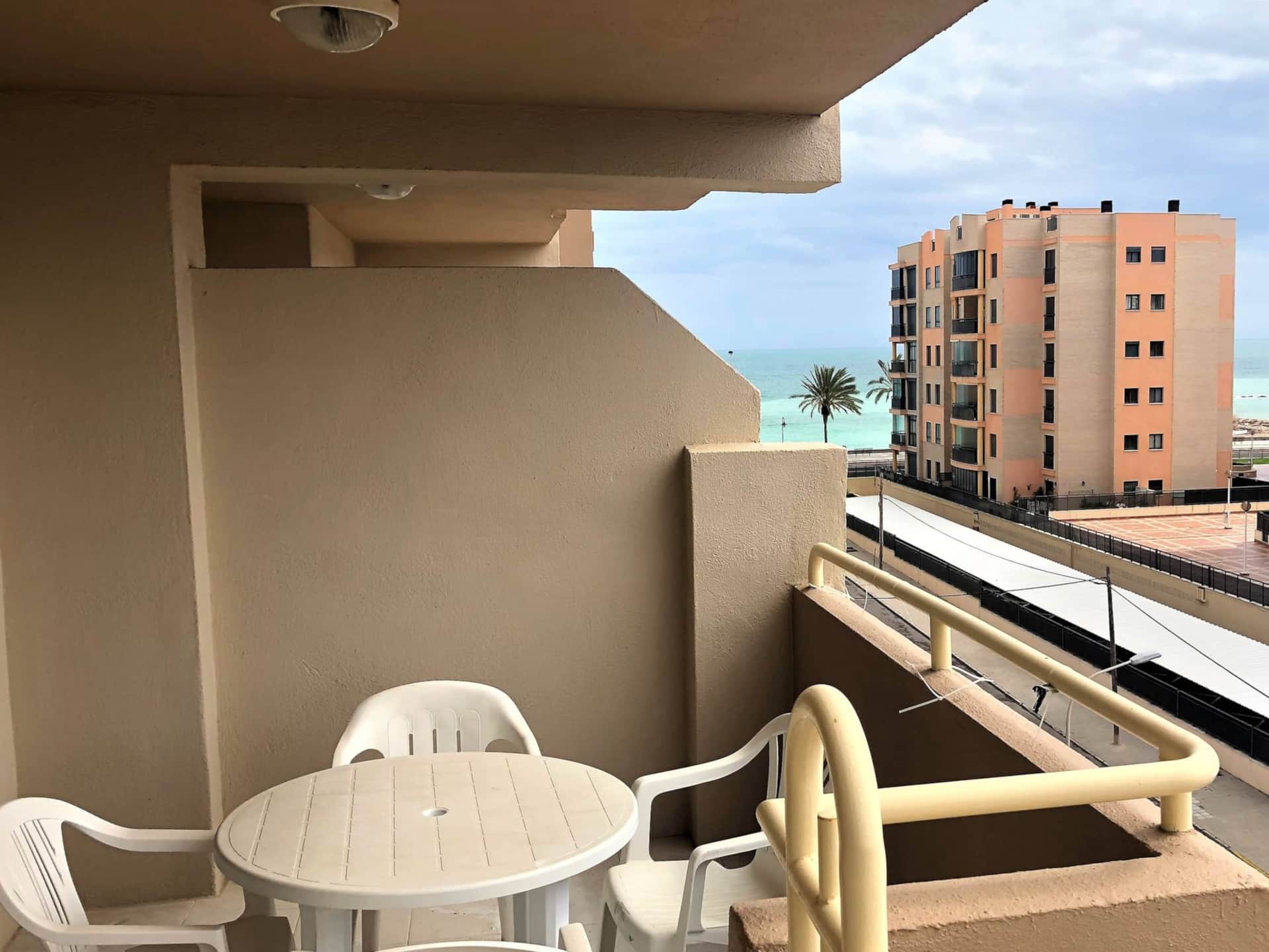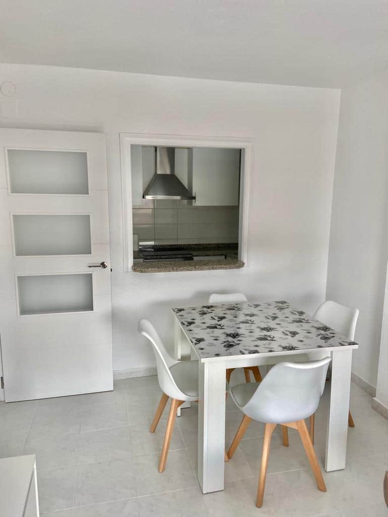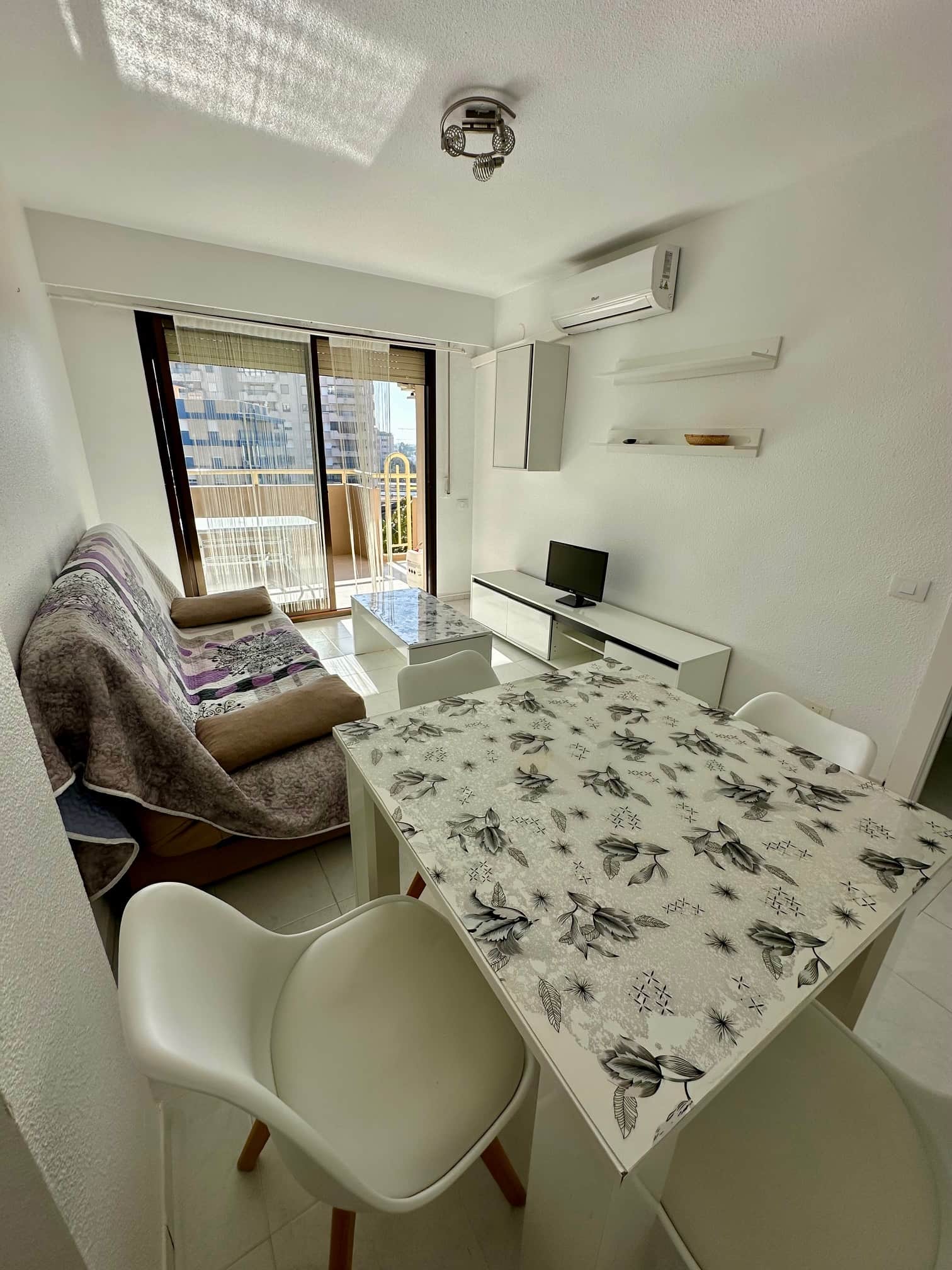 encontramos un sofá cama. Tiene un baño, comedor, una cocina y una balcón con vistas al mar para